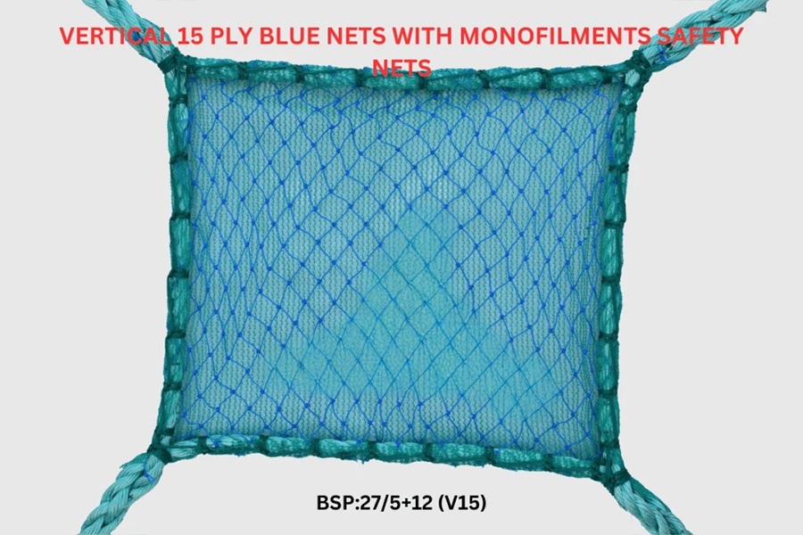 | Product & Code | Vertical 15 PLY Blue Nets with Monofilments Safety Nets – BSP:27/5+12 (V15) |