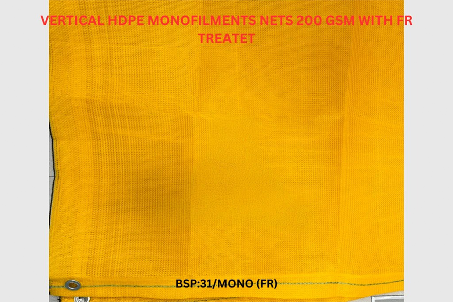 | Product & Code | Vertical HDPE Monofilments Nets 200 GSM with FR Treatet – BSP:31/MONO (FR) |
